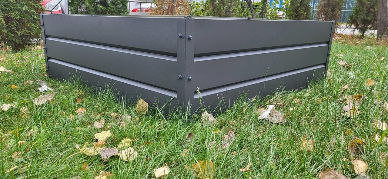 Стандартна комплектація з українського металу 0,45мм сірого кольору для грядки розміром 1*2 метри, висотою 39см: